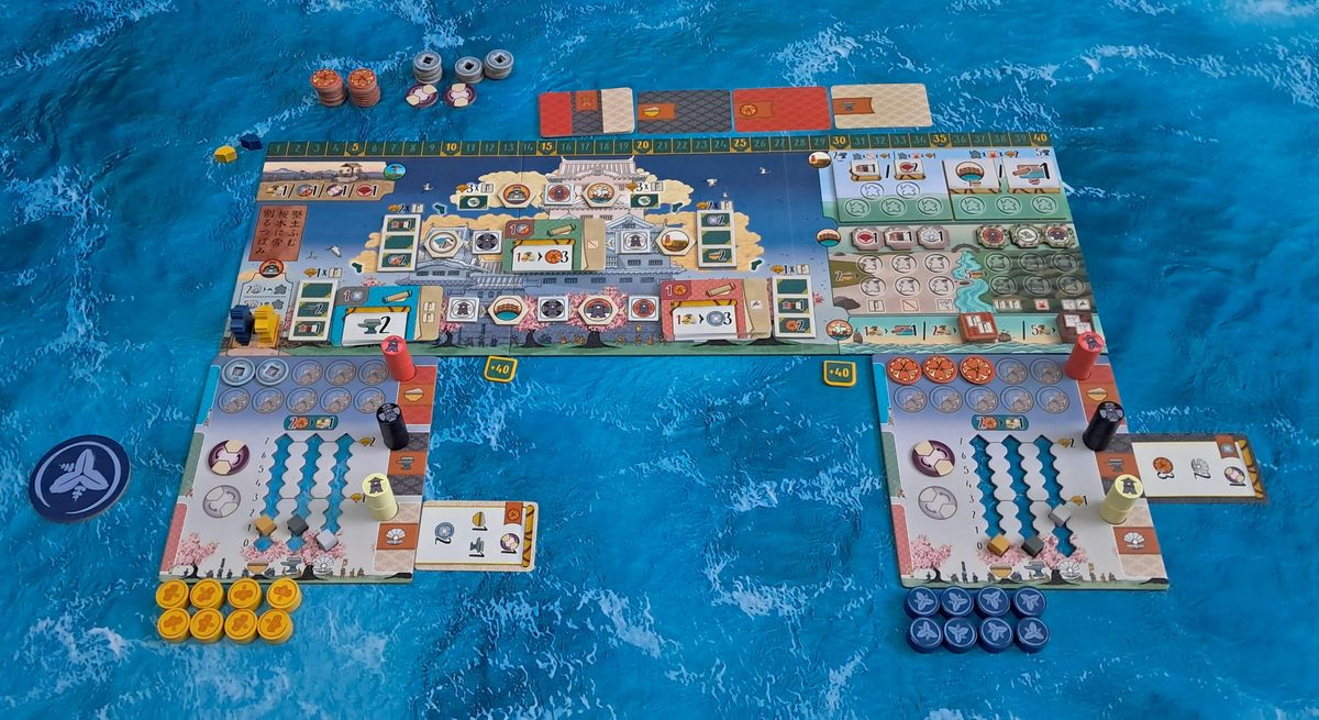 Japonsko je zemí, která za sebou má hodně divokou historii, během níž v ní byly prolity potoky krve. Hra Bílý hrad nám tento souboj už v minulosti jednou prezentovala, avšak nyní přichází s v mnoha ohledech změněným formátem pro dva hráče, který není o nic méně povedený než ten původní. Přičemž ti, jimž není daný kus cizí, rozhodně nebudou vstupovat do neznámých vod, což mimo jiné ukazuje i herní plán, který je tentokrát sice bez mostů pro pokládání kostek, avšak stále má své specifické kouzlo, jímž si vás dokáže získat. Celá partie pak probíhá v pouhých dvou kolech, při nichž má před sebou šest tahů.