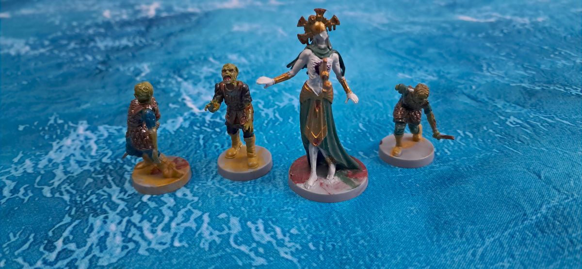 Tento trojlístek stojí proti Královně. Tato nemrtvá krasavice je paní nemrtvých, což pro ni z podstaty věci znamená, že má velmi nízkou sílu. K tomu, aby mohla efektivně fungovat, potřebuje zombie. Právě ty totiž dodávají své paní dodatečnou sílu. Ona sama navíc za pomoci karet může přeživší trávit, a tak je pomalu zabíjet, protože každý další žeton automaticky postiženého zraňuje. Celkově mi partie za ni přišla velmi zajímavá, primárně kvůli nutnosti koordinovat zombie ve jménu eliminace přeživších.