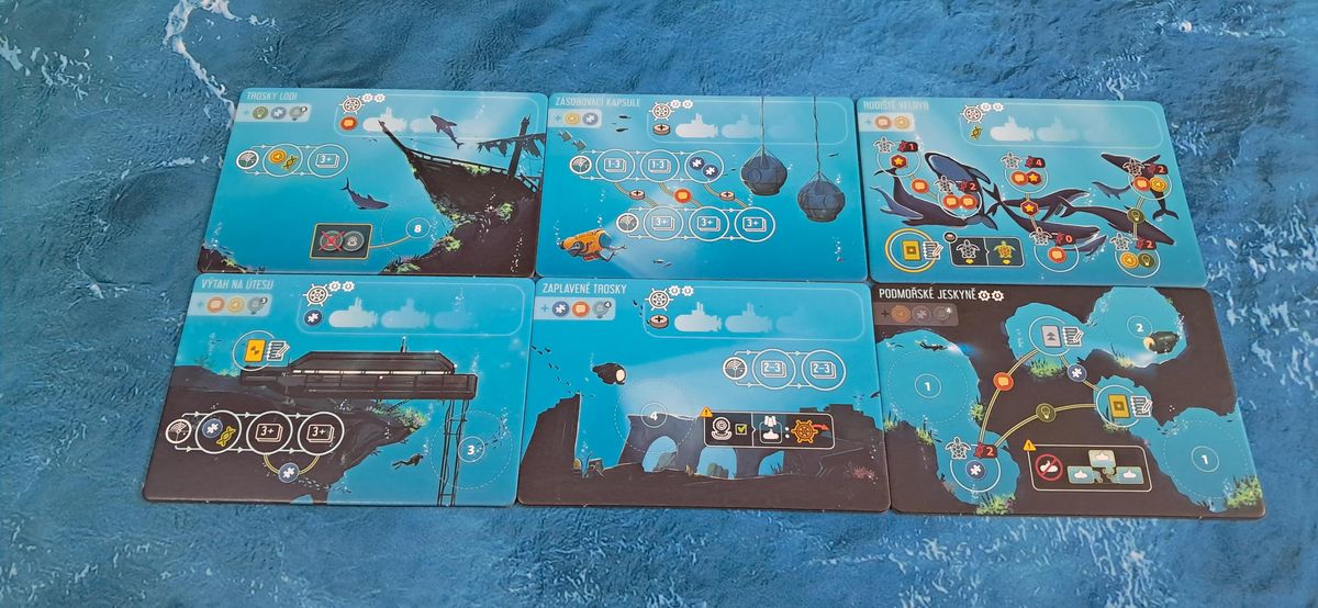 Aktivujete pak specialisty, jež máte ve svém prostoru, přičemž jednotlivec může disponovat jednou akcí, nabízet dvě alternativy, nebo rovnou několik akcí, jež je možné provést v libovolném pořadí všechny. Jestliže pak chcete provádět akce v zónách, je třeba v nich mít ponorku, bez toho to zkrátka nejde. Vždy ale pracujete s disky pocházejícími z překladiště. Jaká je pak samotná nabídka? Akce vás nechají kupříkladu přesouvat vaši ponorku a tak provádět akce v daných lokalitách. Dokonce takto leckdy získáte i nějaký ten pěkný bonus. Stroje však mohou pouze do hloubky, jež jim umožňuje vám dostupná technologie, stejně tak definuje také to, jak daleko doplujete. Plout ovšem můžete jen do položených zón.