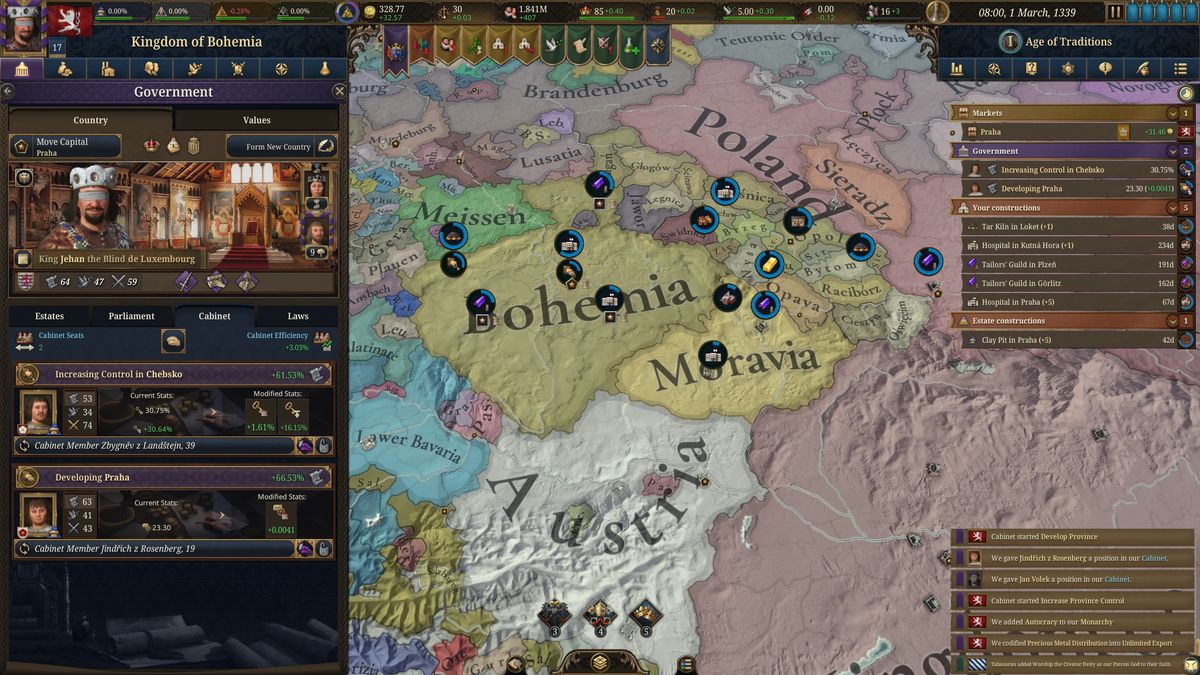 Nejlepší je však začít s frakcí, která má už něco za sebou, jelikož má naprosto odlišné možnosti než prcek fungující v kmenové společnosti. Ale tak už to zkrátka v životě bývá. Chopit se lze třeba Českého království, jemuž vládne všemi nepříliš oblíbený Jan Lucemburský, jemuž zrak úplně neslouží, což z něj dělá zajímavou osůbku. Na Moravě už však čeká ambiciózní Karel IV. Lucemburský, který v daný moment rozhodně není personou, jakou si pamatujeme dnes, nýbrž pouze jedním z řady mužů čekajících na svůj moment zazářit. To, zda se mu to povede, je pouze na vás.
