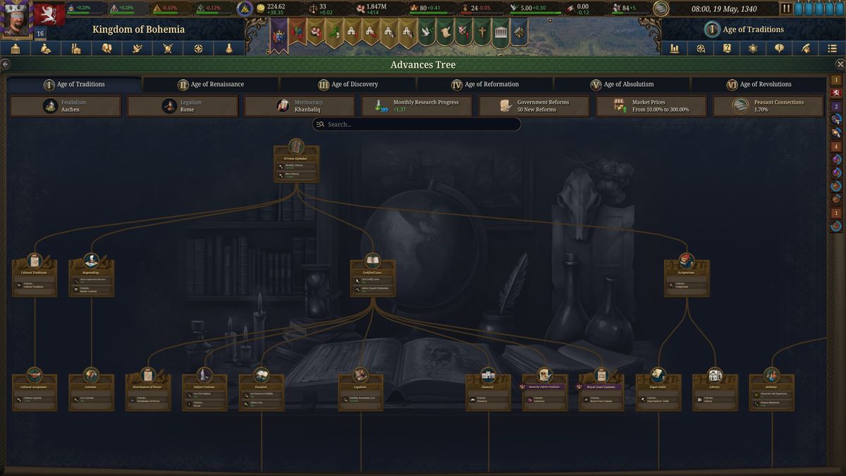 Postaven je před vás ve hře Europa Universalis V bohatý evoluční strom.