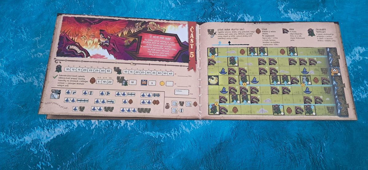 Tahle hra vás zaujme prakticky poprvé, kdy se vám do rukou dostane její krabice. Máme zde totiž vizuálně velmi atraktivní kousek. Jenže to není vše. I uvnitř na vás čeká adekvátní obsah, tedy přesněji řečeno herní komponenty, s nimiž je nutné pracovat. Každý dostane knížečku, načež se můžete dát do zakreslování, jež je vedeno hody kostek. Všechny příběhy jsou z podstaty věci unikátní, díky čemuž si vychutnáte opravdu každý z nich. Super jsou mimo jiné i ilustrace jednotlivých stran, jež děti, mladší hráče a vyložené nehráče snadno nadchnou.