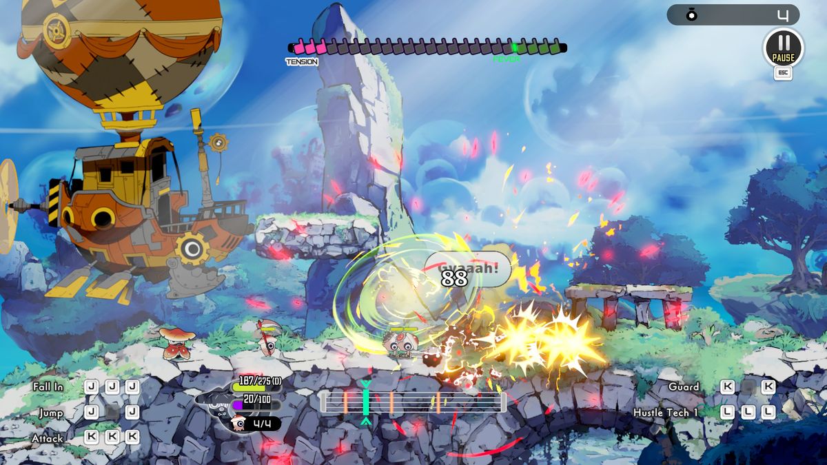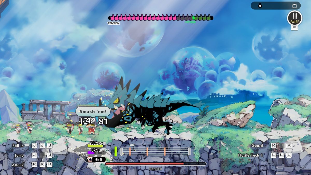 Spolu s vaší postavičkou máte vždy určitou nabídku, kterou musíte hrát ve jménu realizace daných akcí. Chcete, aby za vámi vaši kámoši pochodovali pěkně v davu? Tak to musíte třikrát zahrát určitý tón. Mají vyskočit? Opět je třeba zahrát specifickou část písničky a takto můžeme pokračovat, přičemž vaším úkolem je co nejefektivněji mačkat určitá tlačítka a tak nechat realizovat postavičky kroky, jež vy chcete. Postupem času se pak učíte nové kousky, čímž navyšujete potenciál své party, avšak automaticky také navyšujete celkovou náročnost, jelikož toho musíte mačkat čím dál tím víc, protože bez toho zkrátka neuspějete. Samotný svět je přizpůsoben formátu předběžného přístupu.