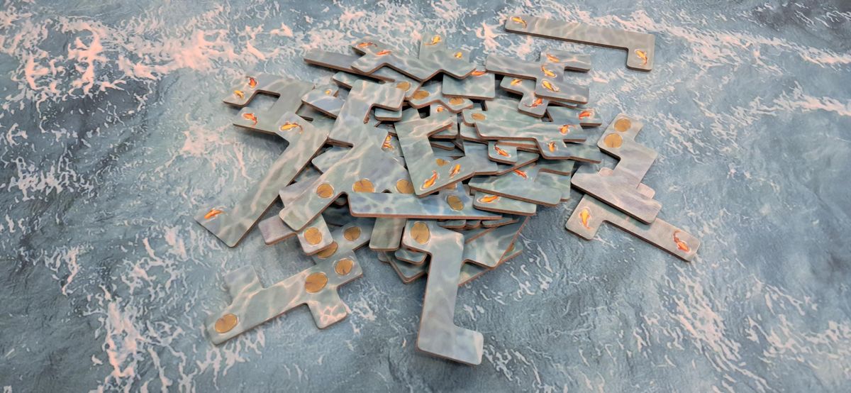 Her s budováním prostředí není úplně málo. Je tudíž možné si vybírat z pestré škály alternativ. Kapři a lekníny je jednou z nich, přičemž její tvůrci pracují s tématem, které není českým hráčům úplně vzdálené. Máme tu totiž budování vlastního harmonického jezírka, jež je tvořeno různými prvky. Stejně jako jinde se tu však hráči střídají v tazích, přičemž hlavní odlišností oproti konkurenci je, že dílky netaháte pravidelně primárně z pytlíčku a nestavíte je do řad, nýbrž je naberete rovnou na startu, kdy si před sebe dáte celkem šestnáct kousků, které představují elementární nabídku vodních dílků. Zajímavé je, že je vedle sebe nemáte rozmístěny, jak se vám zlíbí, nýbrž pracujete s jasně daným rozmístěním.