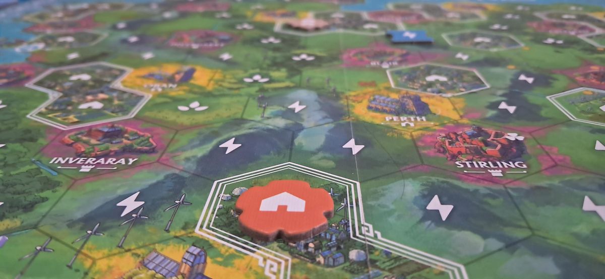 Každý z hráčů si vezme na startu do rukou komponenty jednoho ze čtyř dostupných herních klanů, přičemž si následně před sebe dá své frakční dílky prezentující sídla, elektrárny a farmy v různých podobách. Nutno říci, že tato hromádka není otočena lícem vzhůru, takže vám nezbývá nic jiného než si z ní víceméně náhodně dobírat. Na začátku tahu vždy musíte umístit jeden dílek z ruky na neobsazené šestiúhelníkové pole, přičemž dílek, který pokládáte, musí mít stejný symbol jak pole, na nějž jej chcete umístit. Výjimkou je pouze situace, kdy na bodu žádný symbol není – v takovém případě tam můžete dát farmy a elektrárny bez větších obtíží.