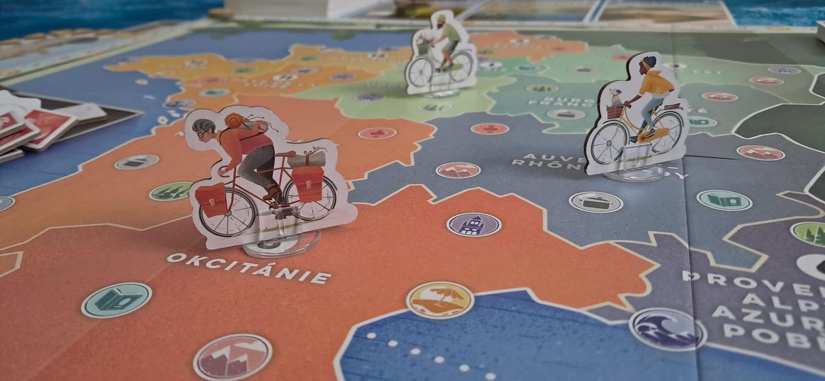 Francie je nádherným státem, po němž je díky jeho krásám radost cestovat, což bezpochyby napadlo i tvůrce deskové hry Pohlednice, kteří se rozhodli vzít tento prostor a dát jej hráčům jako místo, jež budou chtít objevovat, a především v něm navštěvovat místa, jež se různými způsoby zapsala do povědomí celého světa. Každý z vás se tu stane cyklistou projíždějícím napříč herním světem ve jménu navštívení co nejzajímavějších míst. Během svého tahu musíte vždy zahrát tři karty cestování, přičemž každý kus vás nechá provést jednu akci, jež vás určitým způsobem může posunout k vítězství. Jednou z nejzákladnějších akcí je pak pohyb. S jeho pomocí se máte možnost přesunout do sousedního regionu.