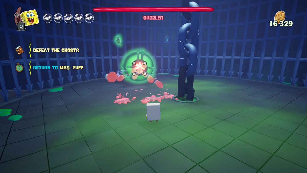 Někdy třeba vezmete Spongeho s jeho bublifukem a zastavíte větrák, abyste následně přepnuli na Patrika, který se přitáhne k platformě, k níž by Sponge zkrátka nedoletěl, bez ohledu na to, jak moc by se snažil. Balance mezi užíváním postav je slušná. Někdy pak nečelíte pouze větrákům, trampolínám a bodcům, nýbrž nepřátelům, kterým se je možné postavit. Ano, je to tak. Dochází tu také k soubojům, přičemž vašimi oponenty jsou duchové. Zpočátku musíte eliminovat primárně slabší éterické entity, avšak časem proti vám stanou i silnější kusy. Většinou pak bojujete s davem, který nemá slitování. Jeho výdrž naštěstí není úplně vysoká, takže když chcete, rychle jej pošlete zpět do sféry duchů.