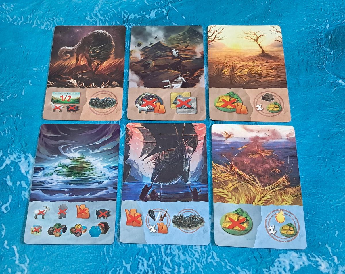 Ta stojí na myšlence odhalení místa a podoby pohromy, která stihne herní svět ve fázi konce věků, načež si bohové vyžádají obětinu. Jak Acoran, tak Moneiba mají své formy pohrom. Tornádo kupříkladu zničí všechny pastviny, a navíc zahubí kozy v zasažených osadách. Sucho pak může vést k hladomoru, v případě, že není půda dostatečně prohnojená. Alternativ je v Tindaya mnoho. Jakmile víte, co kam udeří, společně v týmu vyhodnotíte potenciální dopad pohrom, načež si rozdělíte úkoly potřebné k následnému splnění toho, co si jakožto tým dáte za cíl. Následuje akční fáze, během níž každý hráč provede jednu až dvě akce. Ty lze realizovat primárně na desce řemesel nebo kmene.