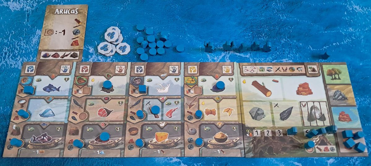 Váš lid pak může na ostrovech zakládat osadu v případě, že má tuto schopnost a terén odpovídá druhu, který si osada žádá. Rybářské chýše v džungli nezaložíte, zatímco chlévům se naopak nedaří na pobřeží. Jestliže pak máte osadu, v níž nejsou zvířata, je vám umožněno jedno až dvě zvířata ze zásoby v divočině umístit. Tradičně na to ale musíte mít podmínky. Prasata míří do chlévů a kozy na pastviny. Pokusit se dokonce můžete o znovuzískání pevností za pomoci zbraní, což vede k boji, jenž rozhoduje to, jak moc do něj vložíte lidí a zdrojů. Akční žetony pak můžete využít i na výstavbu impozantních soch, jejich prodej nebo nákup na řemeslném trhu, kde po zaplacení požadované hodnoty získáte nádobu, sochu nebo zeď.