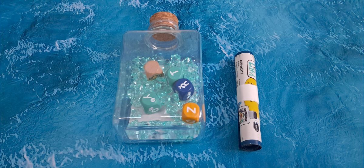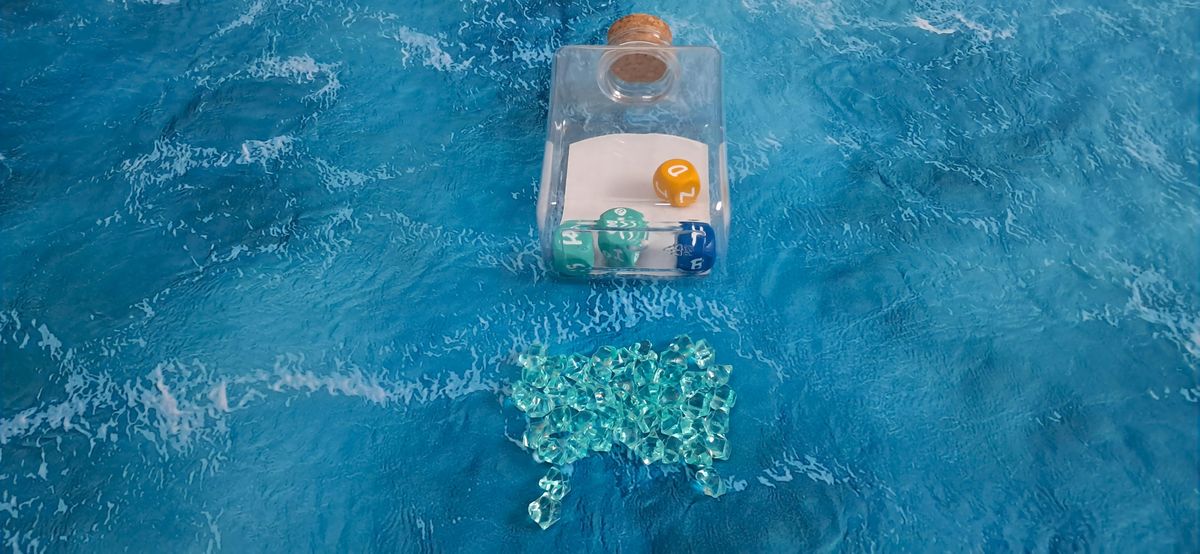 Historie nám ukazuje, že když něco hodíte do moře, může to být vyplaveno klidně po dekádách nebo rovnou celých staletích. Vzkazy v láhvi jsou častým jevem, s nímž se média ráda zabývají, jelikož v útrobách dobře zapečetěných flašek bývá skryto leccos. Někdy milostný dopis, jindy zase prosba o pomoc. Alternativ je zkrátka hodně. Nyní tu máme hru, která s tímto motivem velmi aktivně pracuje. Došlo totiž k nálezu láhve, v jejíchž útrobách je toho více, než tomu většinou bývá. Navíc je to přesně ten kousek, který si můžete vzít kamkoliv, jelikož jsou tu jen kostky, diamanty a tím to hasne. Přičemž v rámci přípravy dochází k vytažení diamantů a jedné kostky, načež zbytek zůstává uvnitř.