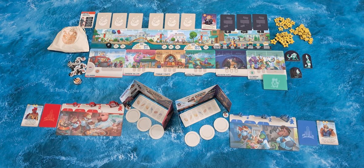 V samém úvodu partie si vždy vyberete barvu a také provozního, který je tak nějak klasicky unikátní, takže žádný z vás do rukou nedostane totožnou postavičku. Vždy je možné počítat s odlišným benefitem. V každé partii máte mimo jiné před sebou jiného kritika, jehož chcete oslnit vámi vytvořeným jídlem. Celý kuchařský souboj trvá celkem sedm kol, rozdělených do tří dní, jež jsou složené vždy z pěti kroků, které je nutné během nich realizovat. V rámci prvního kroku víceméně připravujete kolo na jeho průběh, takže odhalíte novou soutěž, doplní se zboží do jednotlivých lokací, načež dojde k odhalení pomocníka, který je dodatečnou silou, již může ten, kdo ji získá, použít v následujícím kole. Nepředbíhejme však příliš.