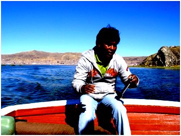 V přístavišti v Punu mě již čekala Jacobova bárka plná turistů, neboť se jednalo o pravidelnou plavbu na plovoucí i pevné ostrovy, s první půlhodinovou zastávkou na ostrově Torani Pata, místem Jacobova bydliště. Celá Jacobova rodina mě již očekávala. Jacobo mě zavedl k ohništi, z něhož se kouřilo a linula se vůně z uvařené polévky z hlav a krků garzas (garza je vodní pták volavka živící se rybami). Předal mě své matce a sestře, jako průvodce vysvětlil turistům zajímavosti o plovoucích ostrovech, umožnil jim, aby si koupili suvenýry, rozloučil se se mnou a s rodinou a podle stanoveného plánu odplul s turisty na další ostrovy.