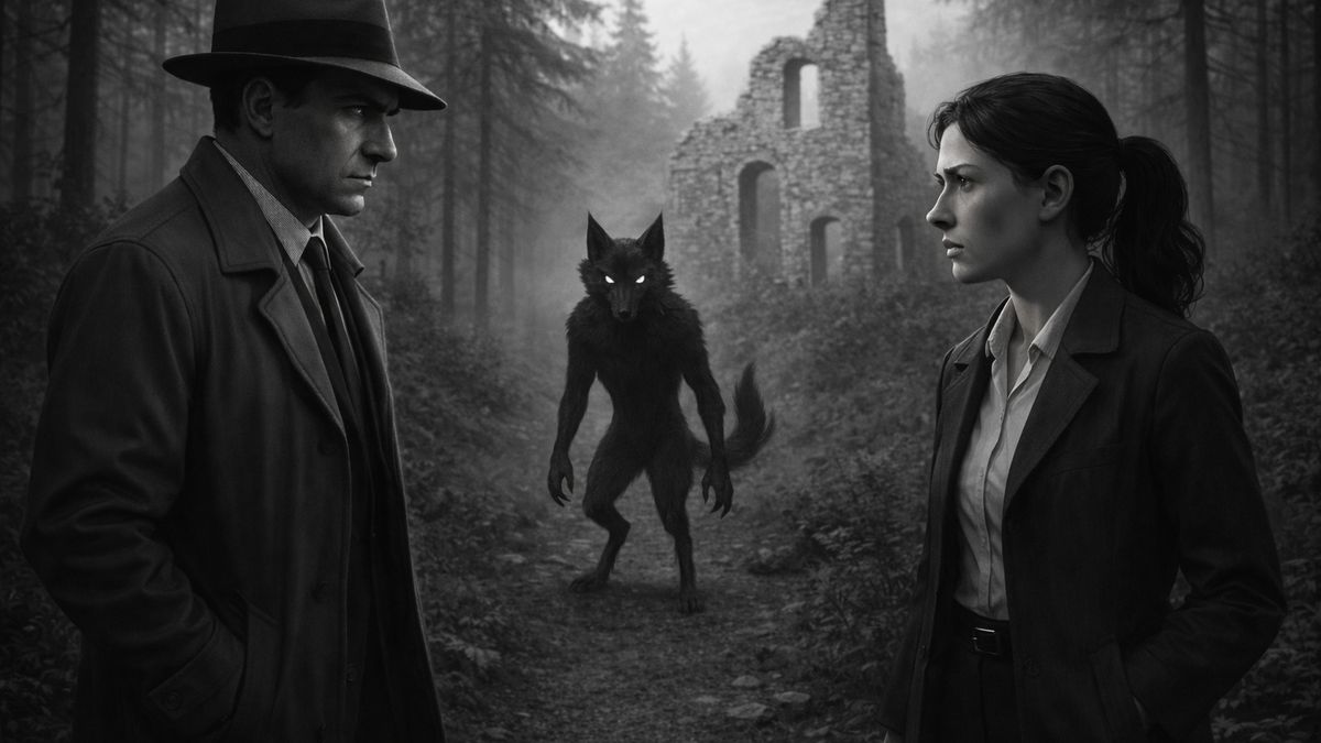 Agenti přiběhli. Nad ležící postavou se tyčila silueta: srst, drápy, zuby a oči, které vypadaly, jako kdyby někdo přidal baterky do něčeho, co baterky nikdy mít nemělo.