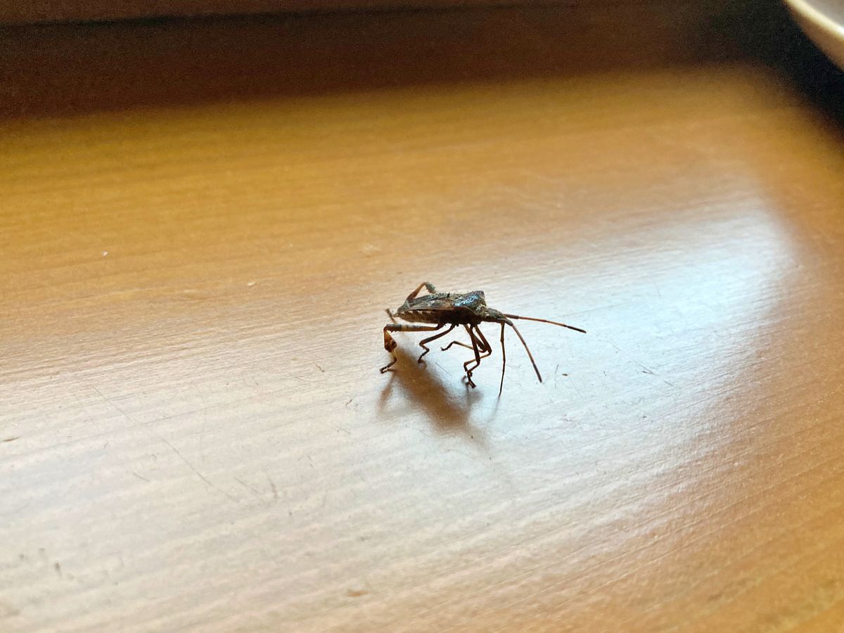 Stačila chvíle hledání a bylo jasno. Tento červenohnědý hmyz s dvojitým véčkem na zádech a listovitým rozšířením zadních nohou má tendenci se před zimou vtírat do tepla lidských obydlí, kde chce přečkat zimu. V USA a v Kanadě některé oblasti tito brouci zaplavují a lidé tam na podzim zažívají doslova invaze.