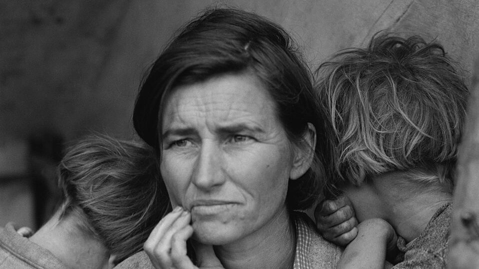 Na jaře roku 1936 foukal východokalifornskou krajinou studený vítr, když fotografka Dorothea Langeová odbočila z cesty poté, co ji u silnice zaujala cedule „Tábor sběračů hrachu“. Sice ten den již spěchala domů, hlavou se jí honily starosti o vlastní rodinu, ale byla tak zvědavá, že sjela na prašnou cestu, aby mohla tábor vidět. Toho odpoledne dílem pouhé náhody pořídila fotografii, která se stala symbolem Velké hospodářské krize.