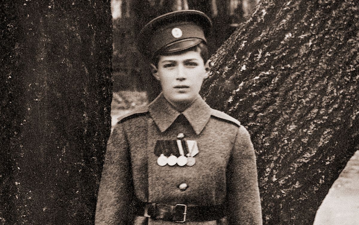 Cesarevič Alexej jako desátník ruské carské armády v roce 1916, tedy dva roky před zavražděným