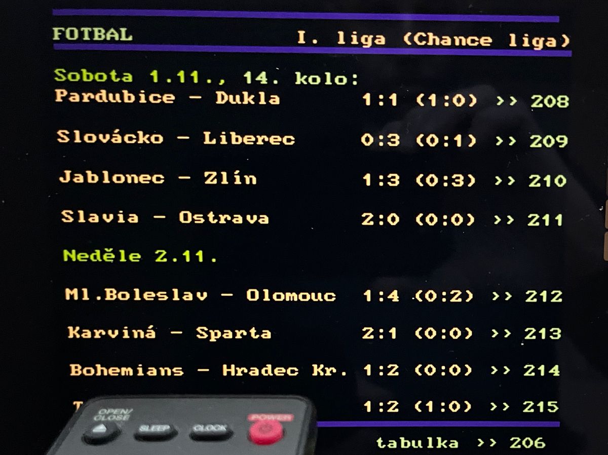 Teletext představuje rychlou cestu k aktuálním sportovním výsledkům