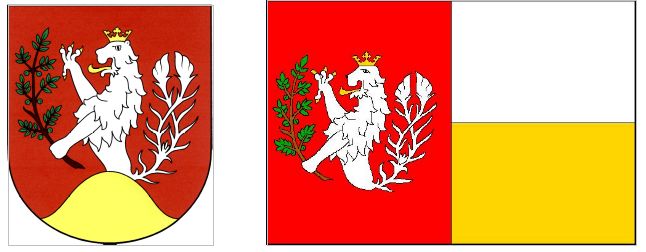 Vlajka: List tvoří červený žerďový pruh široký polovinu délky listu a dva vodorovné pruhy, bílý a žlutý. V červeném pruhu polovina bílého korunovaného dvouocasého lva se žlutou zbrojí, držícího v levé tlapě větev ořešáku s listy a plody. Poměr šířky k délce listu je 2:3. Datum rozhodnutí: 20. 1. 2005 Číslo rozhodnutí: 50