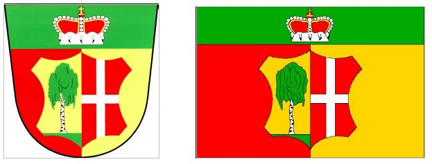 Vlajka: List tvoří zelený vodorovný pruh, široký čtyři sedmnáctiny šířky listu, a dva svislé pruhy, červený a žlutý. V zeleném pruhu knížecí koruna, pod ním uprostřed žluto-červeně polcená useň. V její žerďové polovině na zeleném trávníku bříza, ve vlající polovině bílý středový kříž. Poměr šířky k délce listu je 2:3. Datum rozhodnutí: 21. 9. 2005