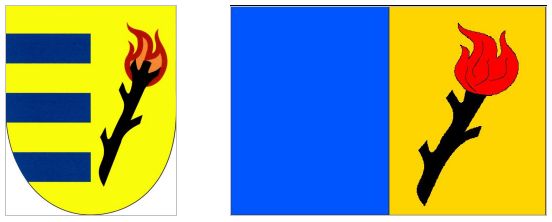 Vlajka: List tvoří dva svislé pruhy, modrý a žlutý. Ve žlutém pruhu šikmo černá hořící ostrev. Poměr šířky k délce listu je 2:3. Datum rozhodnutí: 5. 4. 2001 Číslo rozhodnutí: 83