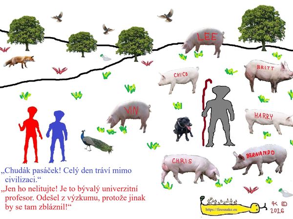 „Bohužel takové skleněné, kamenné a olověné lesy čekají i na jiné zahálčivé lidi,“ povzdechl si stařík.