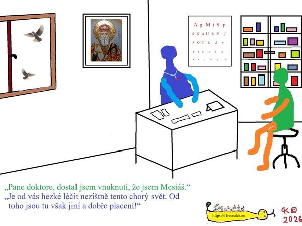 „Chviličku strpení,“ zvolal stařec, „hned vám budu k službám.“