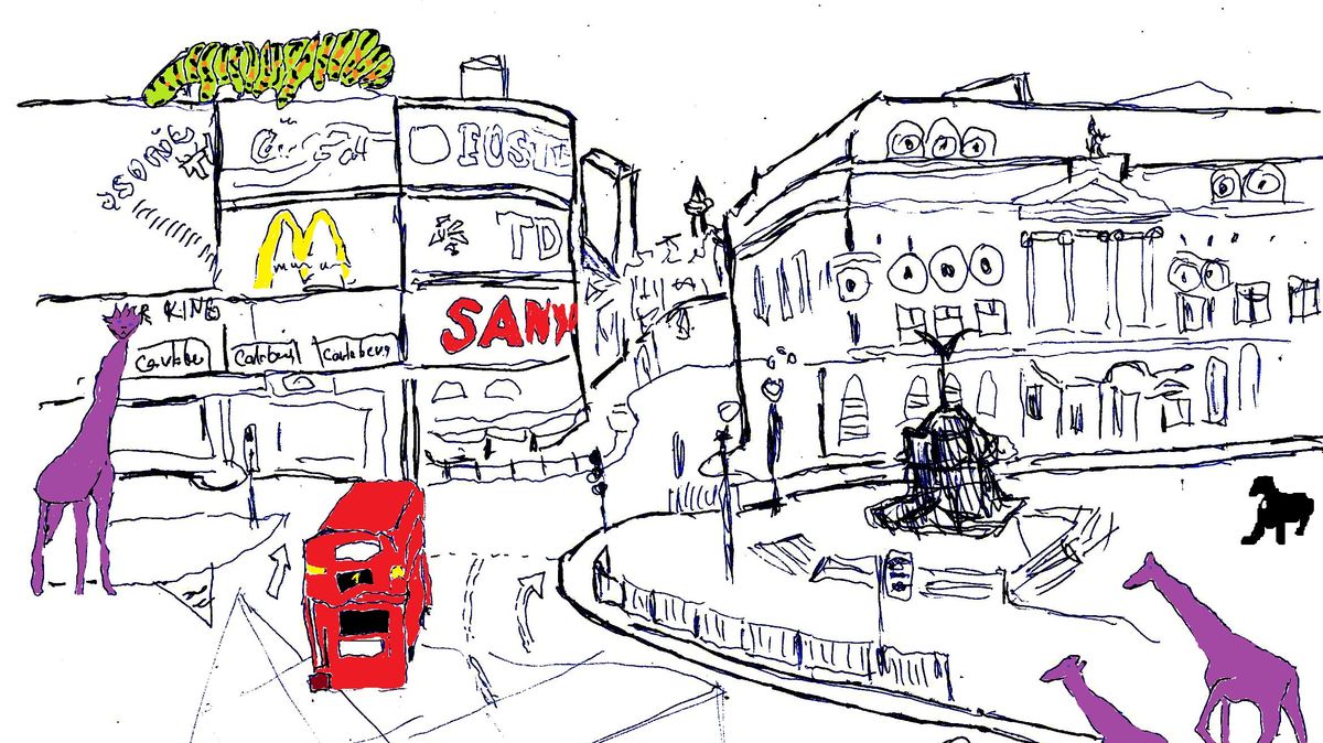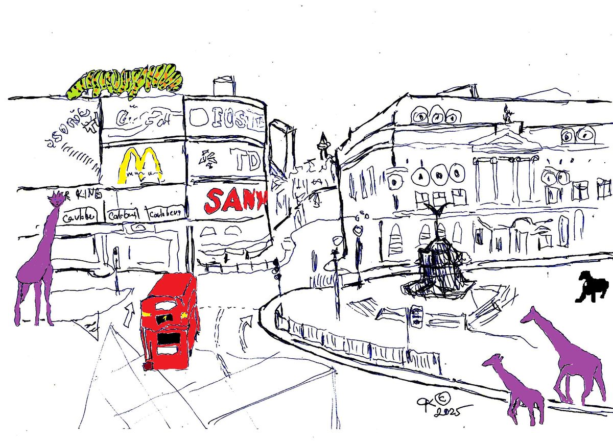 Žirafy na Picadilly Circus