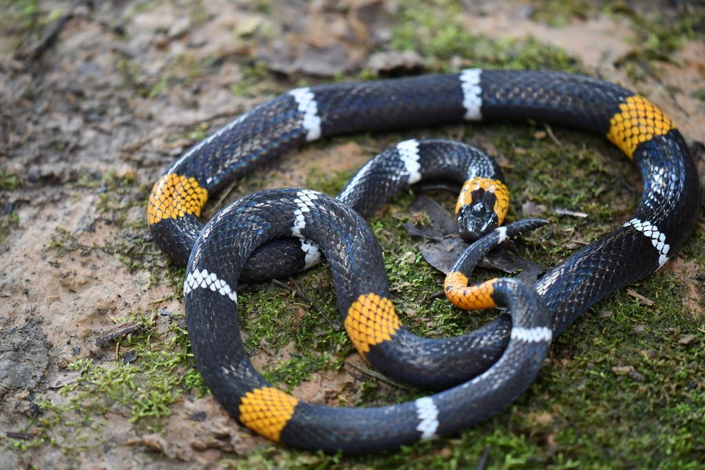 Korálovec Micrurus hemprichii je na lov drápkovců doslova vysazený.