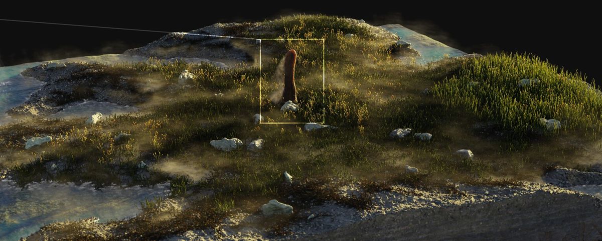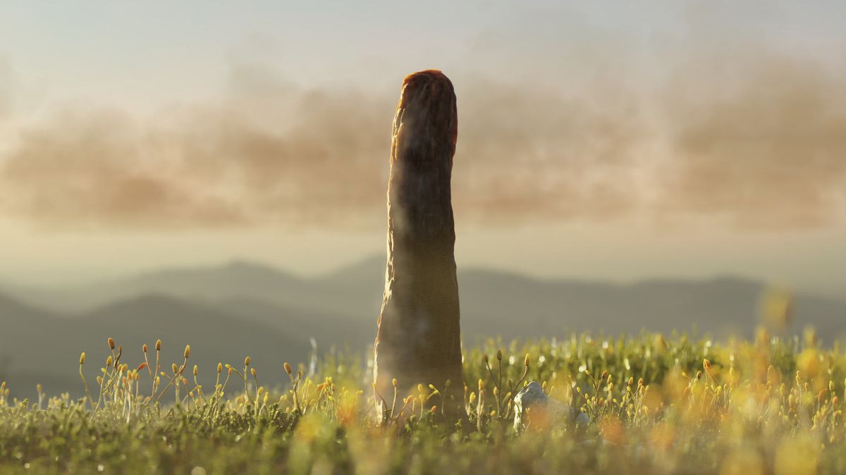 Prototaxites taiti uprostřed porostu cooksonií.