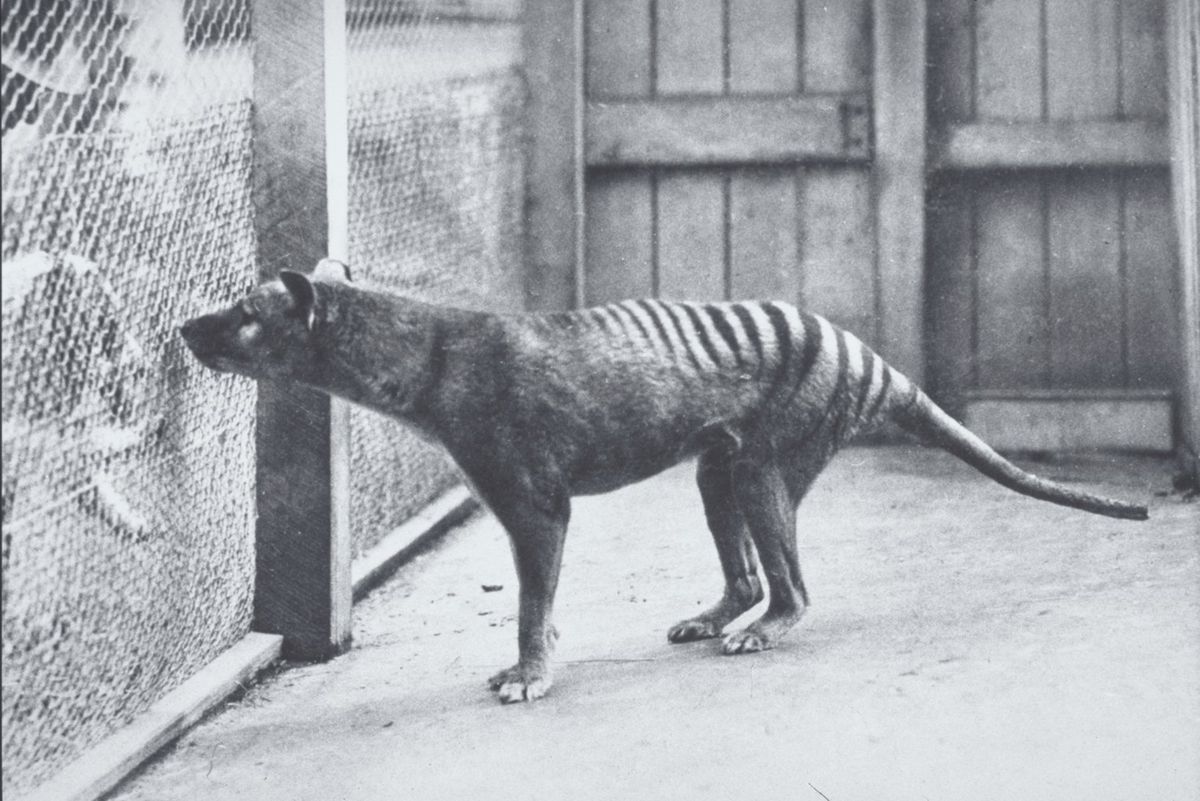 Vakovlk tasmánský (Thylacinus cynocephalus), v Hobartské zoologické zahradě, 1928