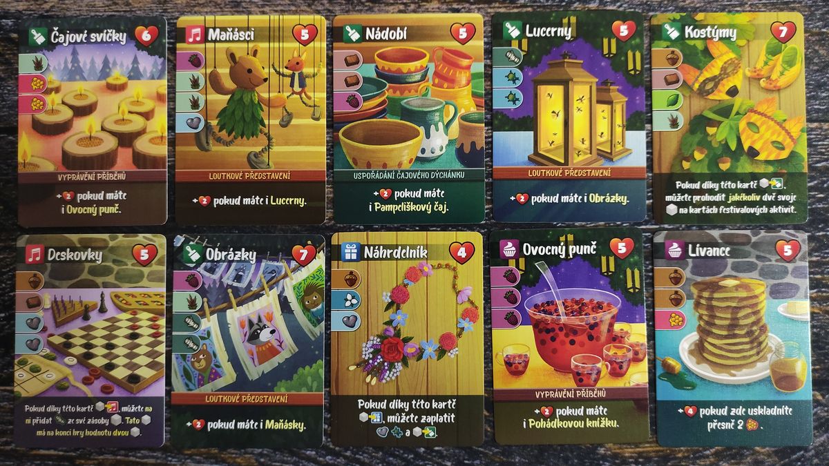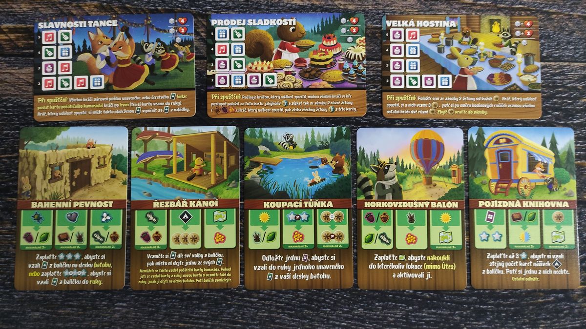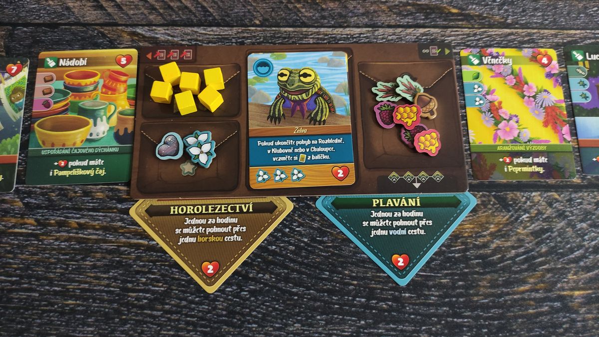 Zahraná karta určí typ lesní cesty, po které se můžete posunout, to je váš druhý krok. Třetím aktivujete lokaci, do které jste se dostali, tím získáte například suroviny, zajímavosti, nové karty kamarádů, nebo potěšení a další.