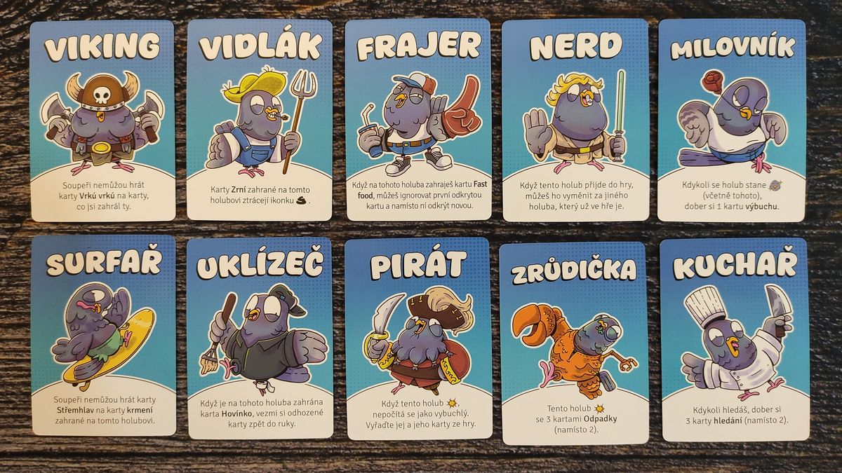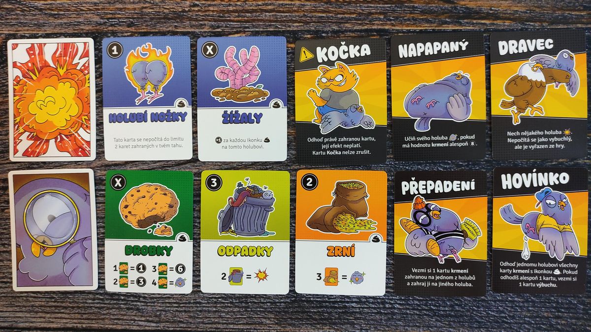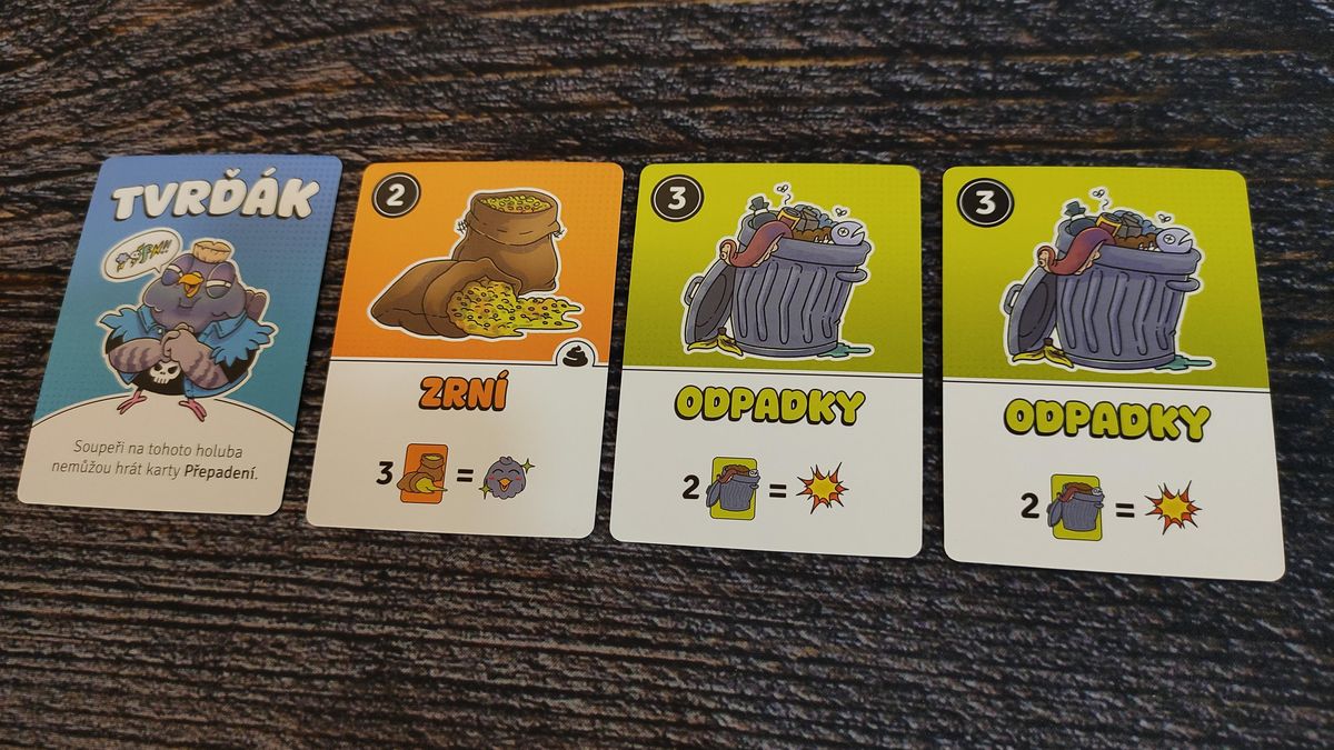 Do toho všeho vstupují ještě akční karty, které dokážou hru pěkně zamíchat, od přehazování krmení až po sabotáže soupeřů. Díky nim má každá partie trochu jiný průběh a nikdy nevíte, kdy se z vašeho klidného holuba stane tikající bomba.