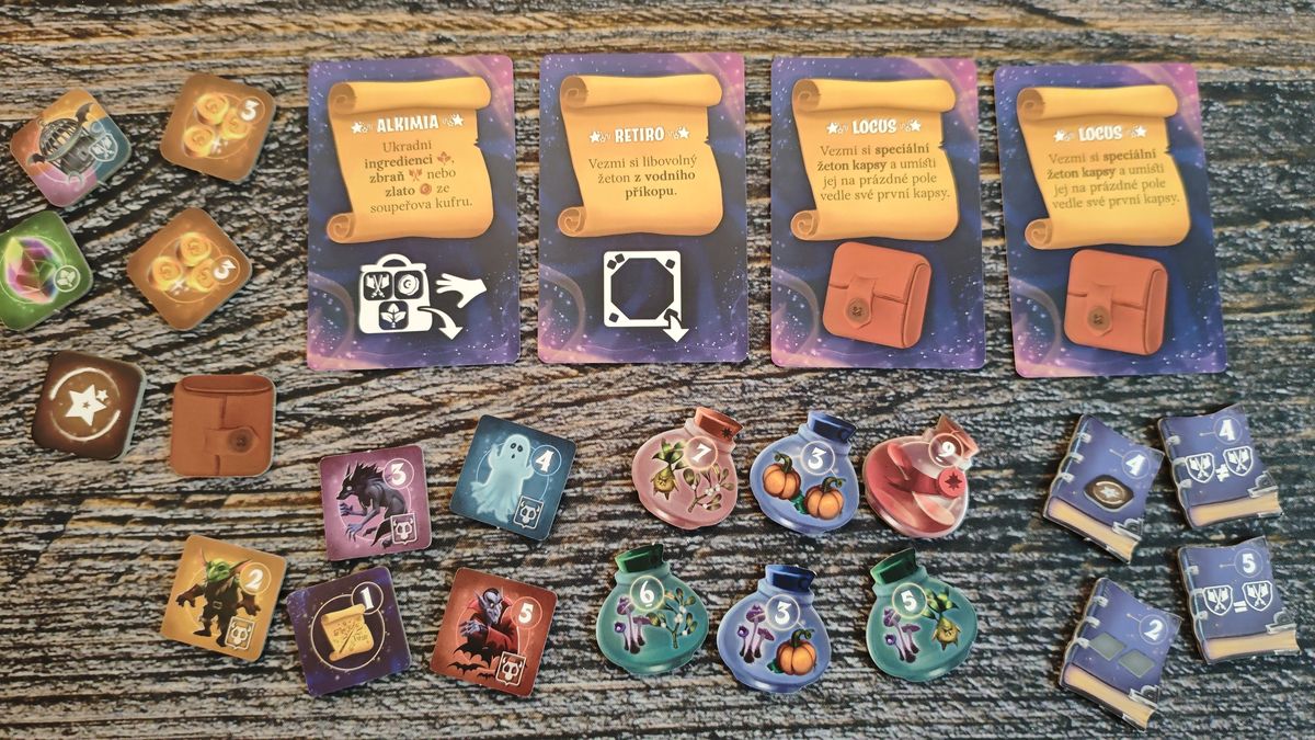 Pokud každý míří jinam, jednoduše si svůj žeton vezme. Pokud však dva hráči označí stejný žeton, rozhoduje síla jejich hůlky. Nejsilnější bere, nejslabší si s vítězem hůlku vymění a ostatní odcházejí s prázdnou. Získané žetony ukládáte do kouzelnického kufru s omezenou kapacitou, takže je potřeba pečlivě zvažovat, co si ponechat, co přeskupit a co nekompromisně odeslat do vodního příkopu.
