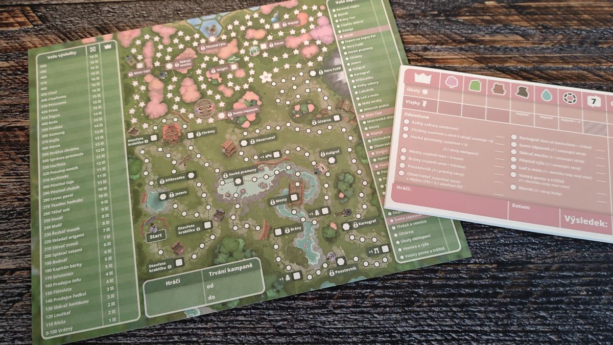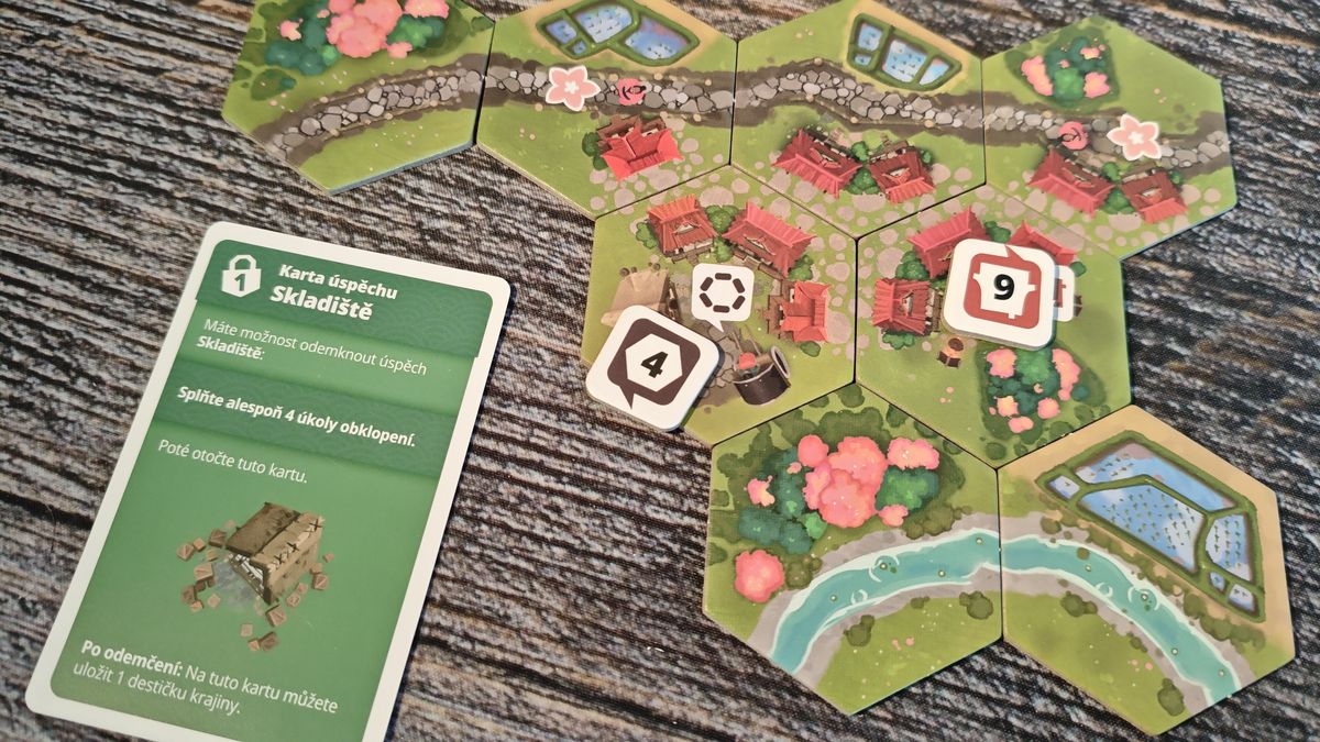 Růžové květy sakury dopadají na hladinu, rýžová pole vytvářejí jemnou mozaiku a vesnice se pomalu rozrůstají. V pozadí přitom stále číhá výzva v podobě limitu tří nesplněných úkolů, což dodává hře příjemné napětí a nutí všechny společně přemýšlet nad dalším krokem. Výsledkem je klidná, plynulá a zároveň chytrá skládačka, která podporuje komunikaci i hledání ideálního umístění každé destičky.