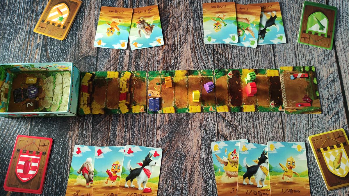 Každá karta má jiné zvířátko, to určí výslednou hodnotu posunu. Při zahrání káčátka se pohnete o tolik polí, kolik káčátek se v tomto kole zahrálo. Díky slepičce se pohnete až o 3 pole, pokud některý z dalších hráčů nezahrál pejska. Stejně tak funguje králík, ale ten se pohne dokonce o 4 pole. A již zmiňovaný pes blokuje karty slepičky a králíka soupeřů a pohne se o počet zablokovaných karet. Díky kohoutovi zopakujete efekt karty z předešlého kola. Pomocí píšťalky se nepohnete, ale berete do ruky všechny zahrané karty. Karty se vynáší současně a první v cíli vítězí.