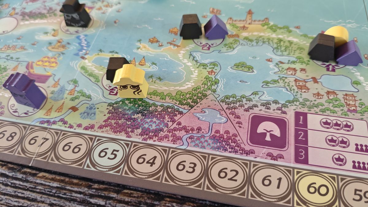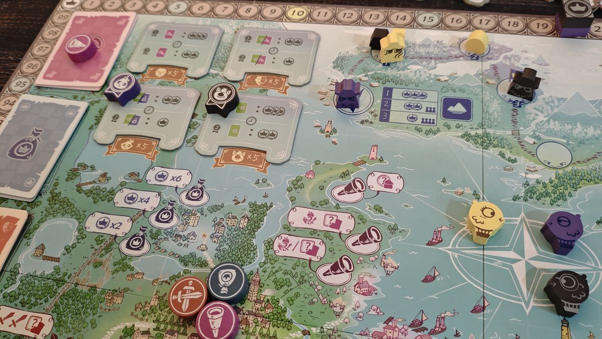 Následuje fáze sbírání, kdy se žetony akcí přesouvají do města a hráči získávají suroviny, body, pohyb po mapě nebo nové obchodní stanice. Ve fázi příjmů pak přichází odměny za obchodníky, dobrodruhy a také bodování podle postupu na průzkumných trasách.