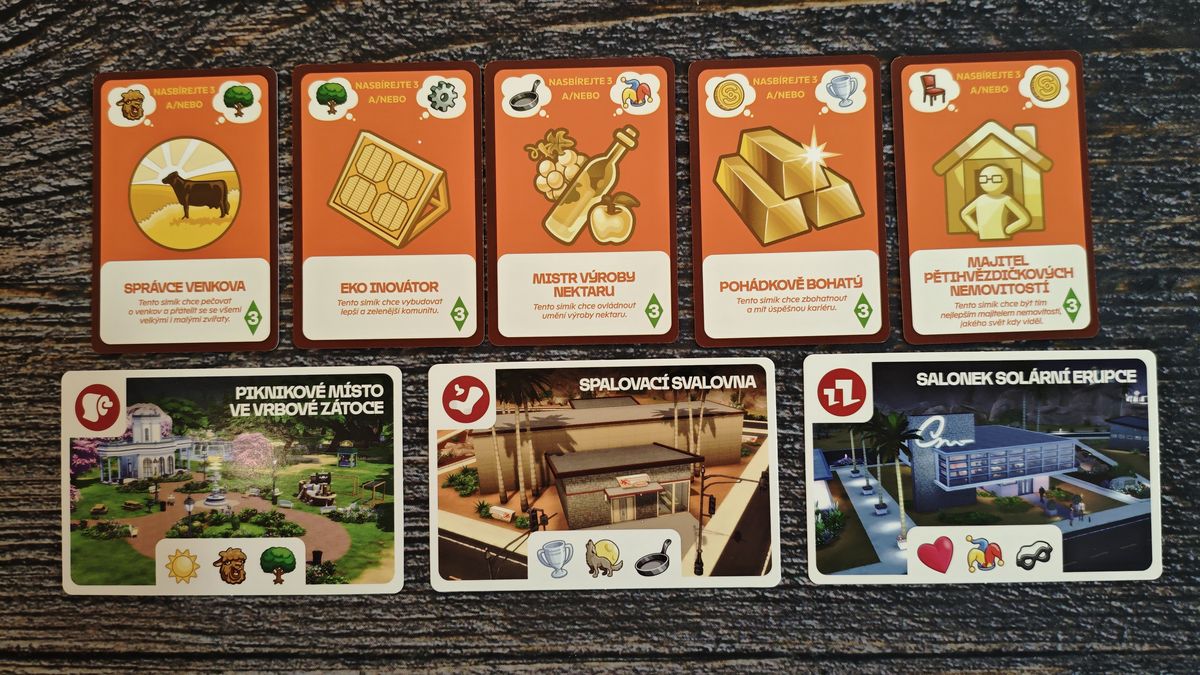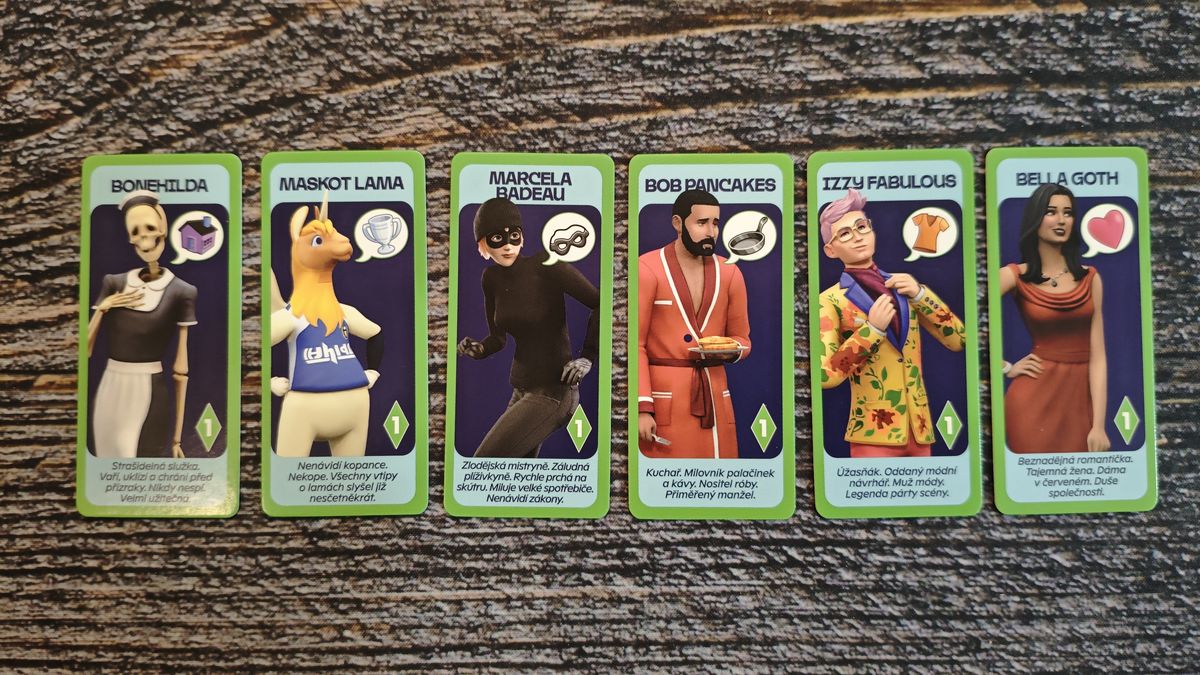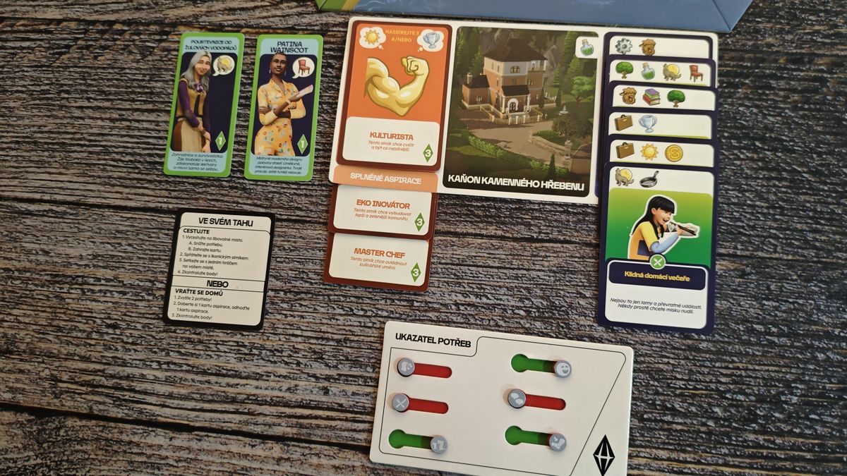 The Sims: Desková hra se snaží přenést atmosféru ikonické videohry do stolní podoby a daří se jí to překvapivě přirozeně. Každý hráč ovládá vlastního simíka, který se stěhuje do nového domova, cestuje po okolí, seznamuje se s ikonickými postavami světa The Sims a plní své životní aspirace. Nejde ale jen o honbu za cíli. Důležitou roli hraje také udržování základních potřeb, protože hladový, nevyspalý nebo znuděný simík zkrátka nemůže podávat špičkové výkony.