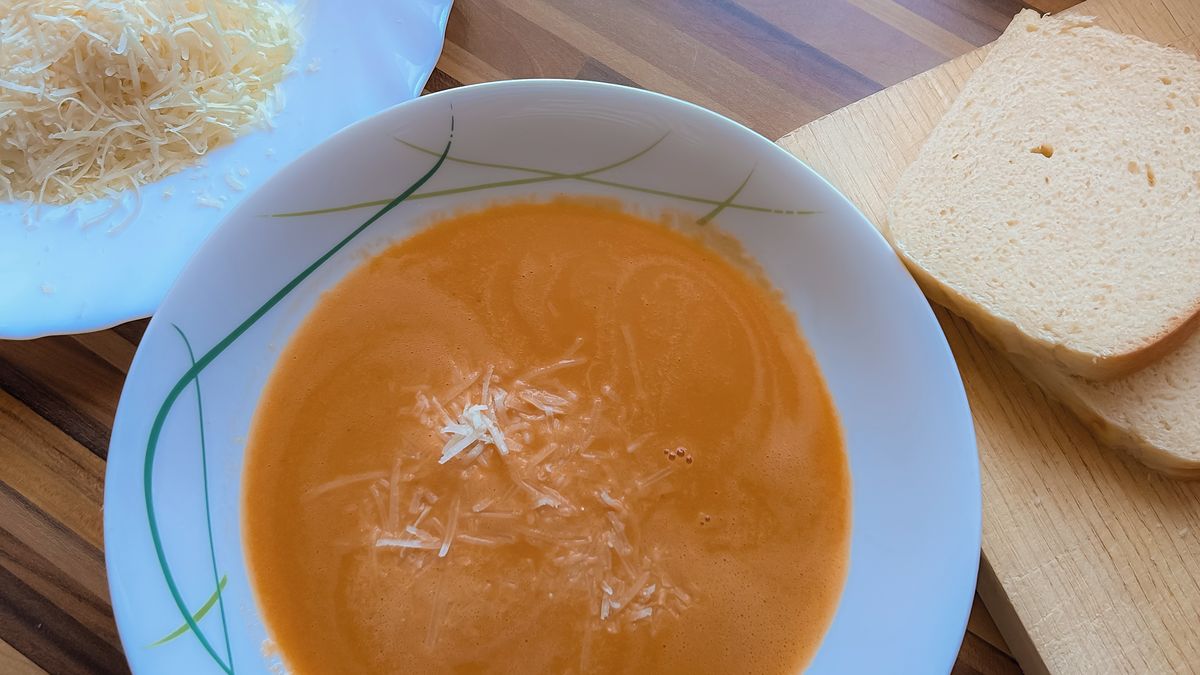 Pro krémovější konzistenci rozmixujte zhruba třetinu polévky a vraťte zpět do hrnce. Dochuťte solí a pepřem, před podáváním zakápněte kvalitním olivovým olejem a posypte parmazánem.
