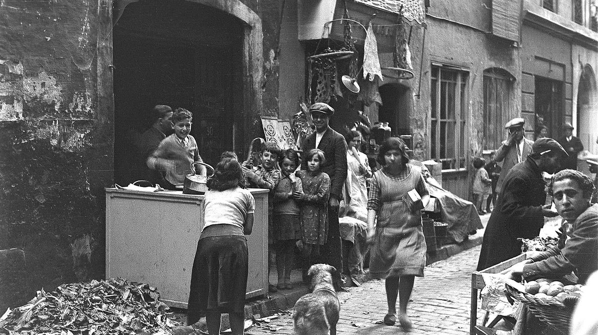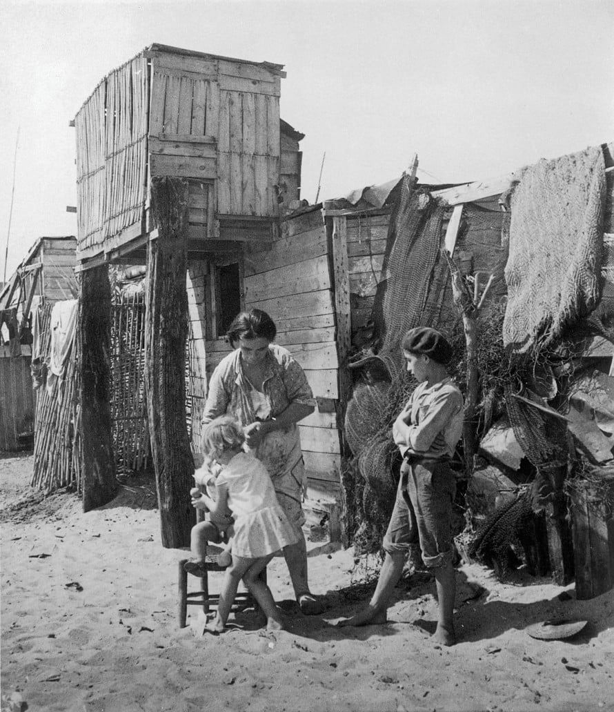Rodinný život v chudinské čtvrti Somorrostro, Barcelona (1934)