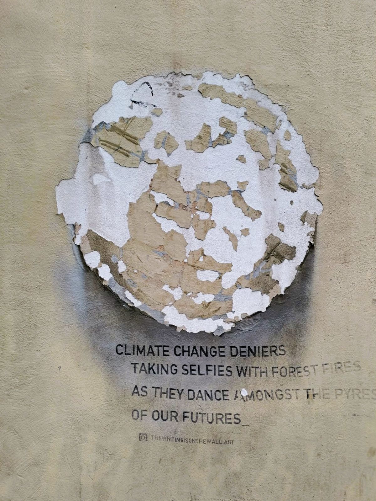 „Popírači klimatické změny si dělají selfie s lesními požáry, zatímco tančí mezi troskami našich budoucností.“