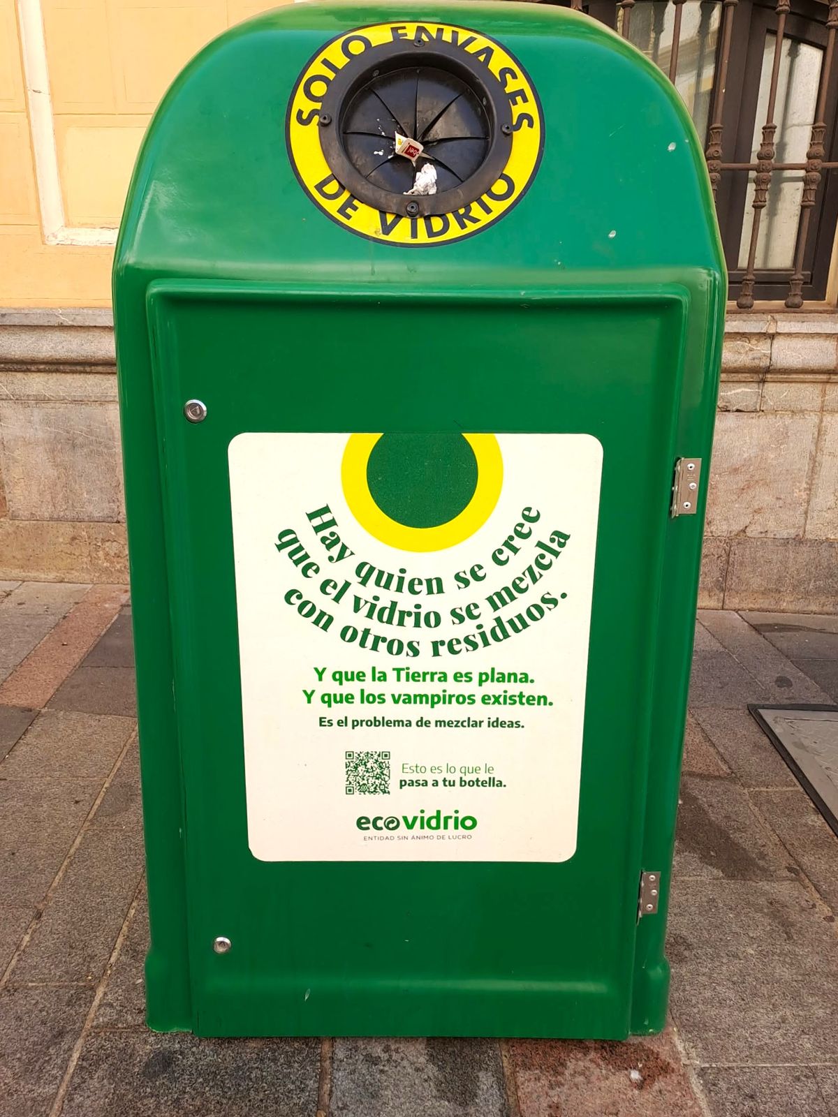 „Jsou lidé, kteří si myslí, že sklo se může pomíchat s jiným odpadem. A že Země je placatá. A že upíři existují. To už je ale jiný problém - problém pomíchaných myšlenek.“