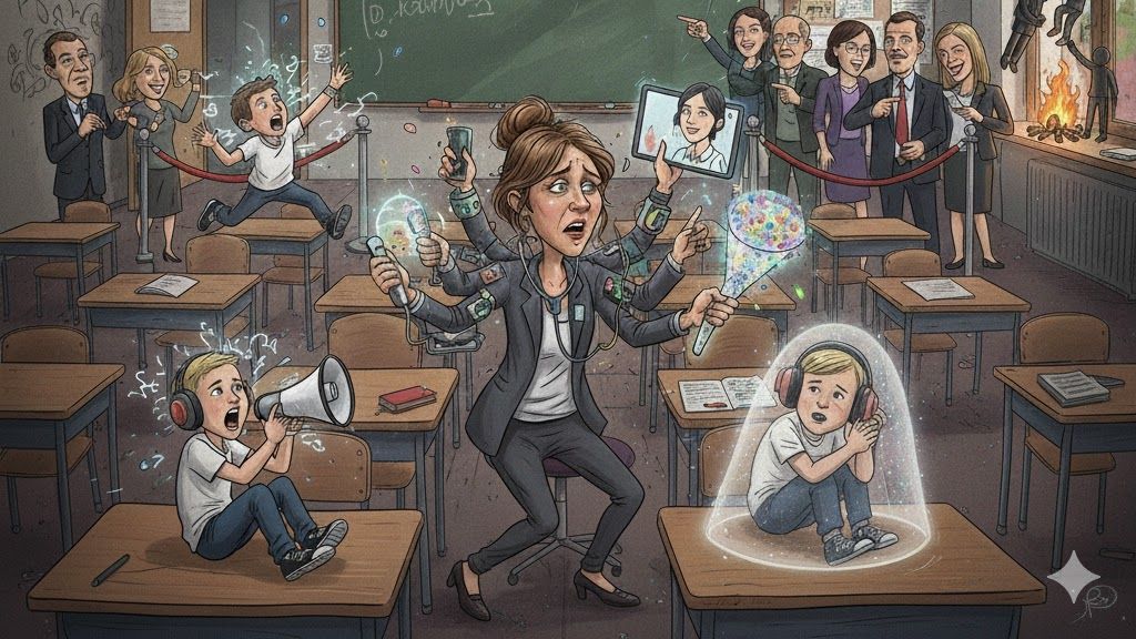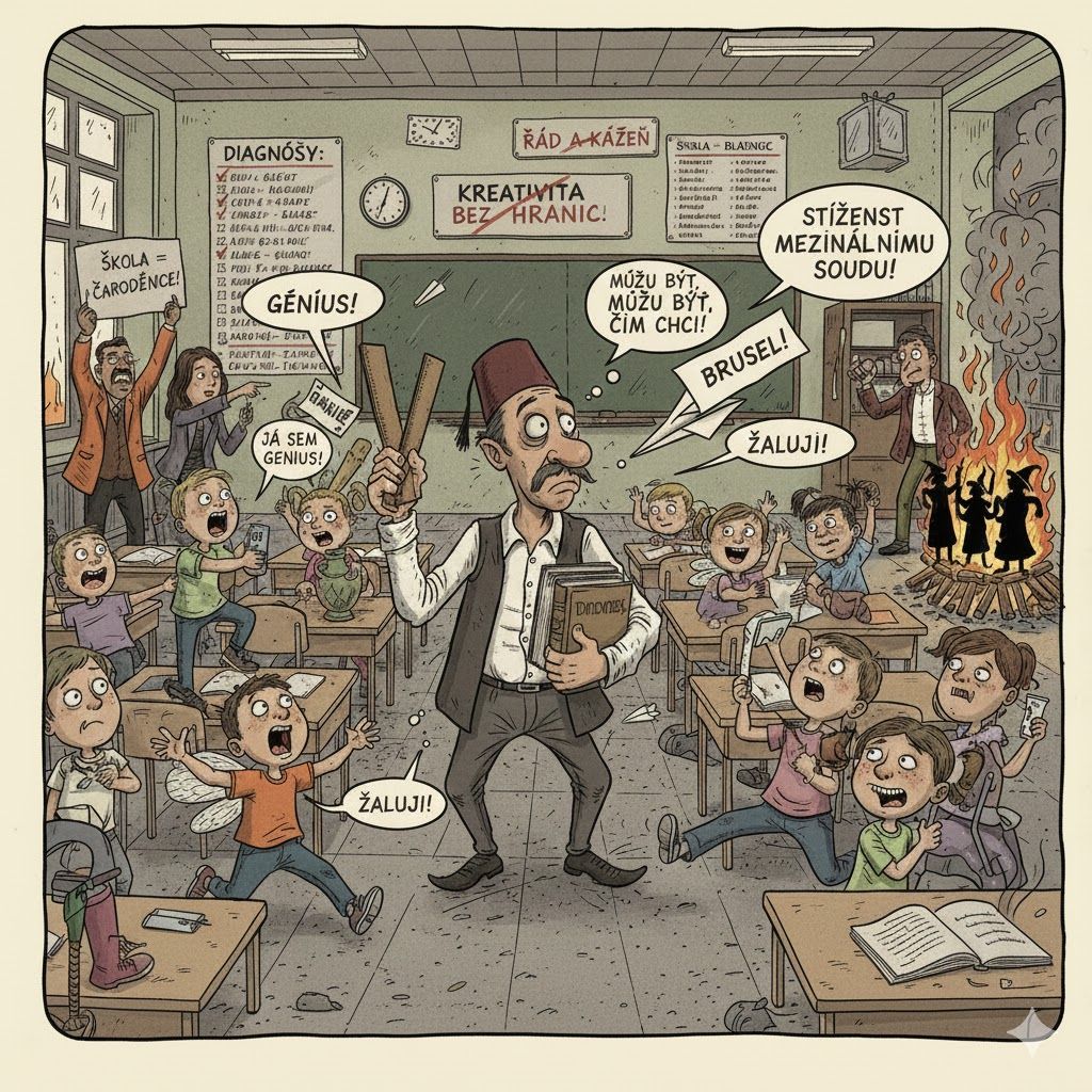 Podle představ rodičů přeplácený český učitel má být dokonalým odborníkem a harmonizující osobností a každému žákovi bez prodlení dopřát přesně to, co jeho diagnózy žádají.