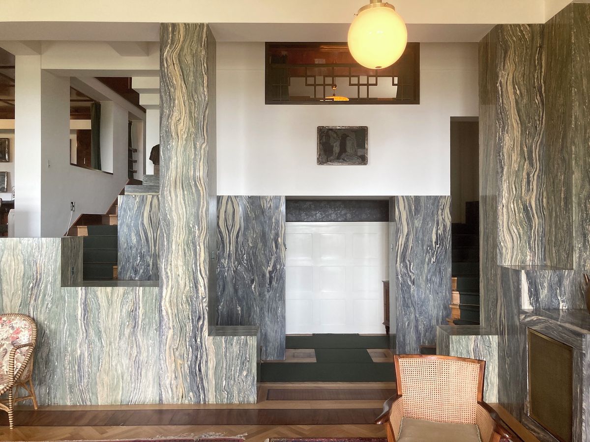 Adolf Loos ve spolupráci s Karlem Lhotou, ukázka raumplanu v Müllerově vile v Praze, 1928–1930.