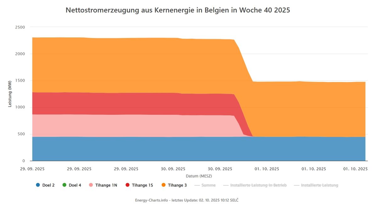 Tihange 1: 962 MW, † 1. 10. 2025 ve věku 50 let