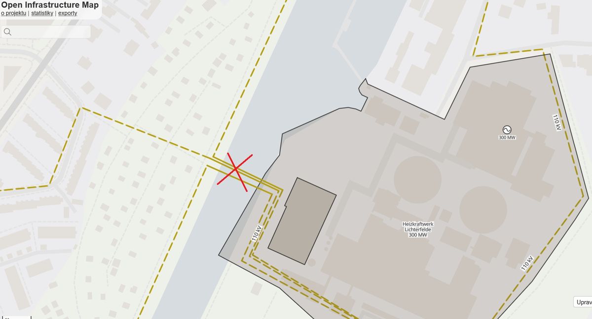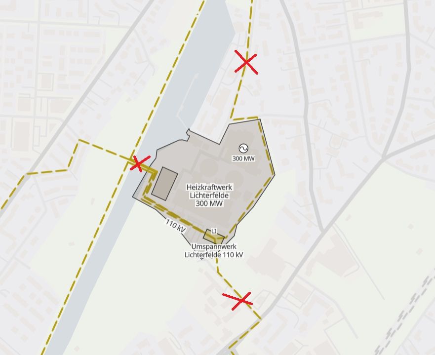 Okolí teplárny Lichterfelde na infrastrukturní mapě