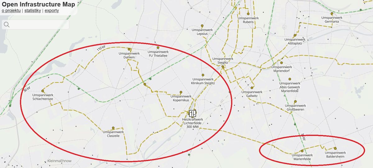 Zde je nutné udělat jednu otravnou, ale důležitou vysvětlující odbočku. Zatímco v Česku patří naprostá většina 110kV sítě do klasické distribuce (až na historický pozůstatek o délce 84 km, o nějž pečuje ČEPS), v Německu má spíš páteřní charakter (byť patří pořád do distribuce) a přímo v Berlíně slouží jako klíčová napěťová vrstva, která oproti Praze vykazuje složitější topologii a výrazně vyšší podíl podzemních vedení.
