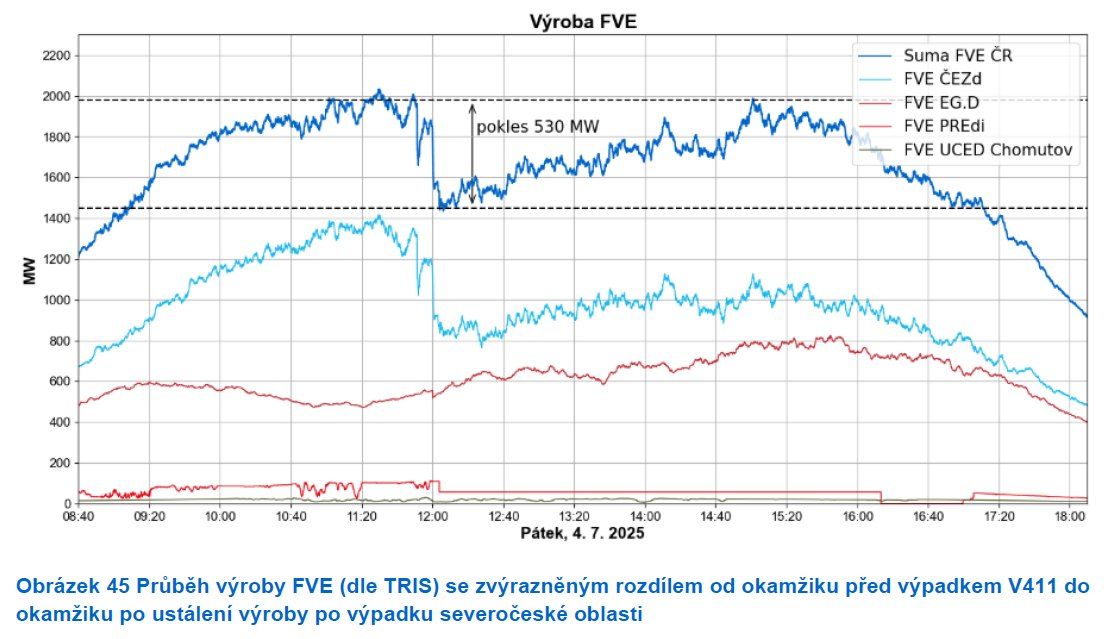 Zbytek příběhu známe: ztráta zatížení v celkové výši 2 300 MW (= 28 %), část Prahy a pěti krajů bez elektřiny, dohromady cca milion odběrných míst.