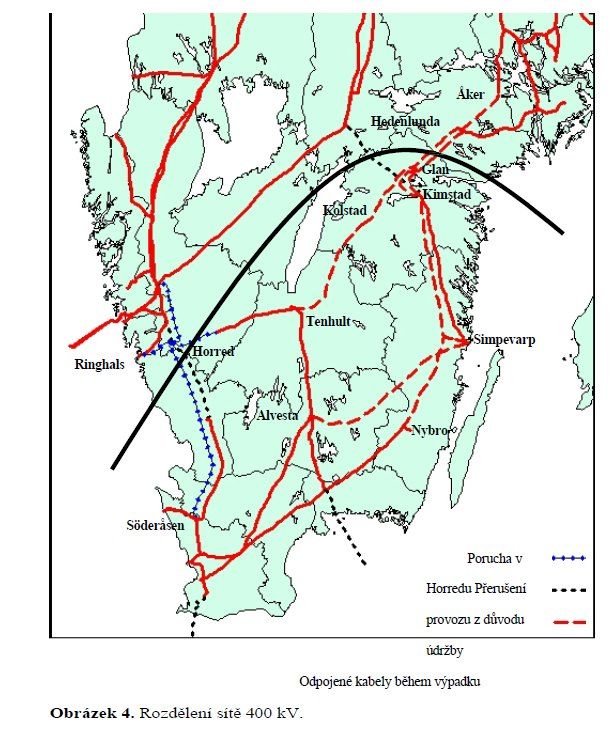 Ve 12:30 vypadl blok 3 jaderné elektrárny Oskarshamn na jihovýchodě Švédska. Ztrátu 1 176 MW sice švédská soustava pocítila, ale díky zvýšené výrobě ze severu a také z Norska a Finska ji měla v pohodě vypružit. Jenomže jen pět minut nato vyřadila nezávislá porucha v jihozápadní rozvodně Horred další dva jaderné bloky v elektrárně Ringhals. Dohromady minus 3 000 MW! To už švédská soustava neustála a velmi pochybuji, zda by to v tak krátké době vůbec nějaká na světě dokázala.