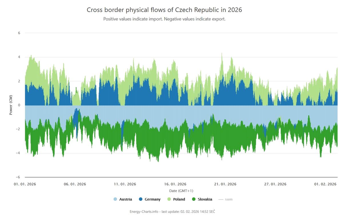 Pozorné zeměpisné oko zaregistrovalo, že v grafu chybí právě Rakousko (analogicky v rakouském chybí zase Slovensko). Popravdě tuto statistickou absenci neumím vysvětlit, a když jsem se na to ptal ChatGPT, řekl, že to ví naprosto přesně a začal vařit z vody s tím, že nejběžněji směřují stovky megawattů ze Slovenska do Rakouska.