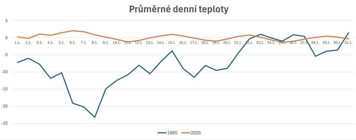 Srovnání teplot v lednu (1985 vs. 2025)